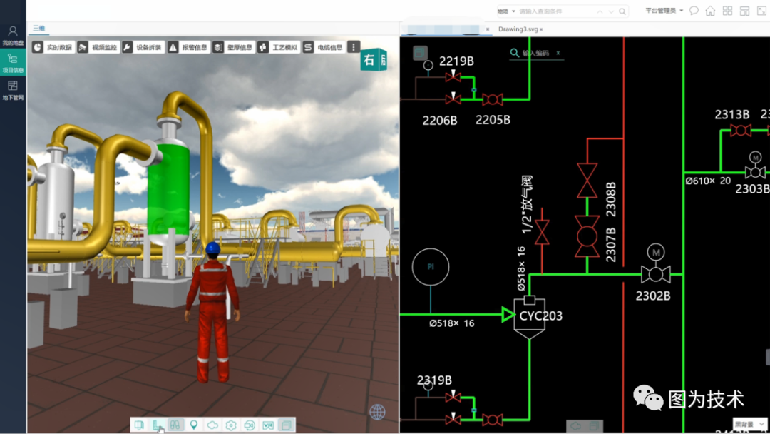 图为技术依托CPPE对管网站场、长输管道的属地市场三维建模、数字化恢复等方面的丰富经验与自身三维数字化平台的技术优势。围绕油气业务链各环节提质增效和高效协同,打通IT和OT界限,实现数据全面采集和生产过程实时感知,以及经营管理数据集成共享,将知识经验以工业软件的方式进行积累、共享、复用,广泛建立行业特色的知识模型和数字孪生体,确保管道安全,助力管道运维,给生产经营赋能。